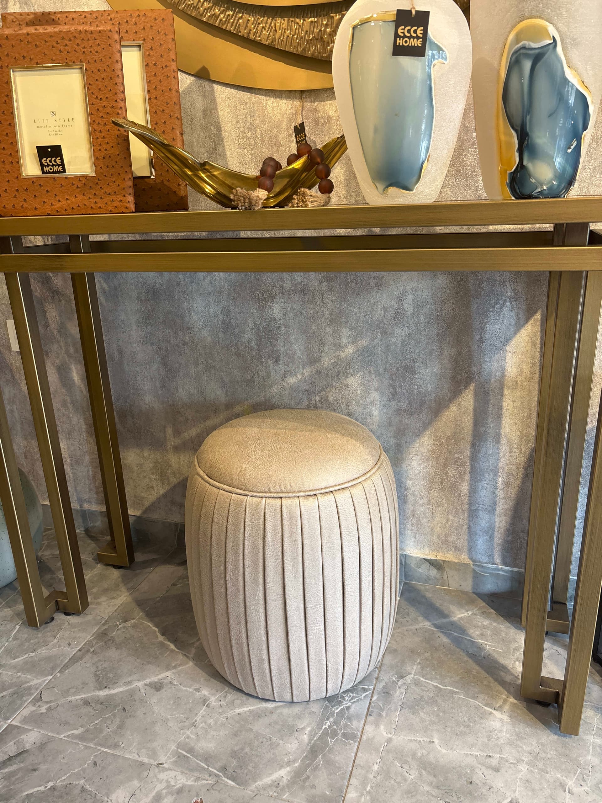36 cm çapında 46 cm yüksekliğinde. Vegan deri puf
